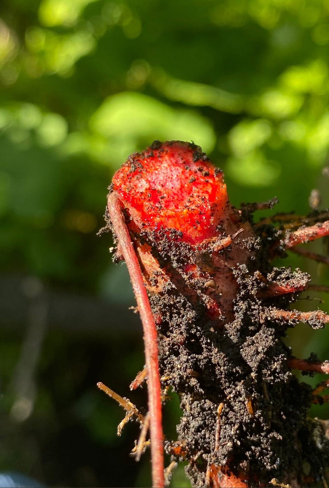 The Bloodroot, like many plants, develops underground limb-like appendages called rhizomes. Ginger is a rhizome. Many spring ephemerals—the Mayapple, Skunk Cabbage, Ostrich Fern---grow from rhizomes. They store nutrients and send nodes and roots out into the soil, allowing for a plant to clone itself. The Bloodroot gets its name from the poisonous red sap within its rhizome. Sometimes I reminisce about the days where I didn’t know about the plant’s red sap. Sometimes I imagine that feeling of looking into a pure, white flower with blood mysteriously in its name.
