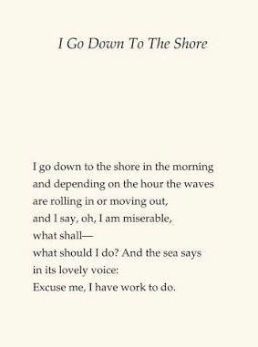 I am reminded of Mary Oliver’s poem “I Go Down to the Shore” where she is humbled by the work and mechanism of what is: