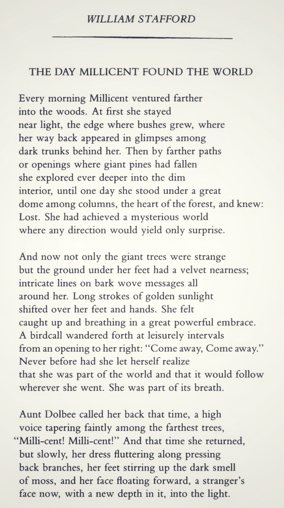 This was supposed to be an essay about me. About how I am turning 40 tomorrow. About how I still feel like a child that shouldn’t be taken seriously. Shouldn’t I be grown up by now? Shouldn’t I be part of a solution? What good am I staring at flowers? Am I done hiding in the woods yet? But here I am, still dilly-dallying in the dirt. Here I am, more curious than knowing. Here I am, still achieving mysterious worlds. The poet William Stafford wrote one of my favorite poems, “The Day Millicent Found the World”: